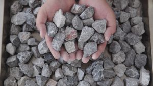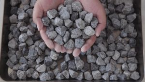 該生產(chǎn)線(xiàn)原料為白云巖,石料通過(guò)礦車(chē)運(yùn)送到給料機(jī)上,給料機(jī)再將石料送至JC顎式破碎機(jī)進(jìn)行粗碎。南昌礦機(jī)生產(chǎn)的JC顎式破碎機(jī)具有對(duì)稱(chēng)破碎腔、楔塊排礦口調(diào)整系統(tǒng)和可靠的重型動(dòng)顎總成,可輕松實(shí)現(xiàn)高產(chǎn)量、大破碎比、低磨耗及大進(jìn)料粒度。