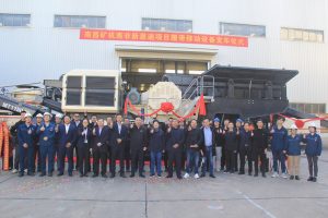 ? ? 近日,南昌礦機(jī)南非新思迪項(xiàng)目履帶移動設(shè)備發(fā)車儀式在南昌礦機(jī)舉行。隨著廣西新思迪投資貿(mào)易有限公司(下稱“廣西新思迪”)董事長劉時青、南昌礦機(jī)集團(tuán)股份有限公司(下稱“南昌礦機(jī)”)董事長李順山現(xiàn)場共同宣布“正式發(fā)車!”,標(biāo)志著南昌礦機(jī)三臺MT系列履帶移動設(shè)備即將“出征”南非,這也為南昌礦機(jī)構(gòu)筑“國際知名品牌”的夢想版圖再度添上濃墨重彩的一筆。