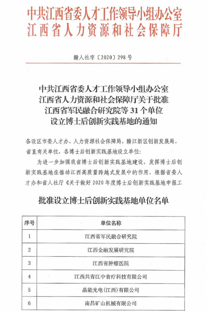 南昌礦機(jī)獲批設(shè)立省級(jí)博士后創(chuàng)新實(shí)踐基地
