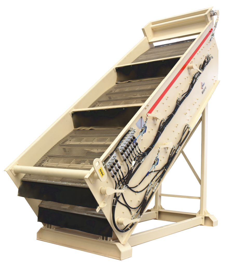 ? ? HFS液壓高頻篩采用原裝進(jìn)口液壓振動(dòng)泵驅(qū)動(dòng),頻率可以通過(guò)調(diào)節(jié)液壓流量來(lái)調(diào)節(jié);利用先進(jìn)的篩分原理,使粗料被彈的更高,細(xì)料接觸篩面更頻繁;設(shè)備通過(guò)振梁拍打篩面實(shí)現(xiàn)高頻篩分,振動(dòng)強(qiáng)度大,振動(dòng)梁結(jié)構(gòu)簡(jiǎn)單、可靠;快速便捷的篩網(wǎng)張緊機(jī)構(gòu),便于現(xiàn)場(chǎng)更換篩網(wǎng);具有先進(jìn)的液壓控制系統(tǒng),液壓系統(tǒng)主要部件均采用原裝進(jìn)口件;每個(gè)振動(dòng)單元實(shí)現(xiàn)獨(dú)立調(diào)節(jié)控制,可滿足不同工況條件。