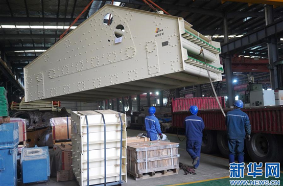 2月27日,工作人員將出口的篩分機設(shè)備裝車。當日,江西南昌礦山機械公司生產(chǎn)的4臺礦山篩分機設(shè)備啟程發(fā)往塞爾維亞,這是自新冠肺炎疫情發(fā)生以來,該公司生產(chǎn)交付的首批海外訂單。