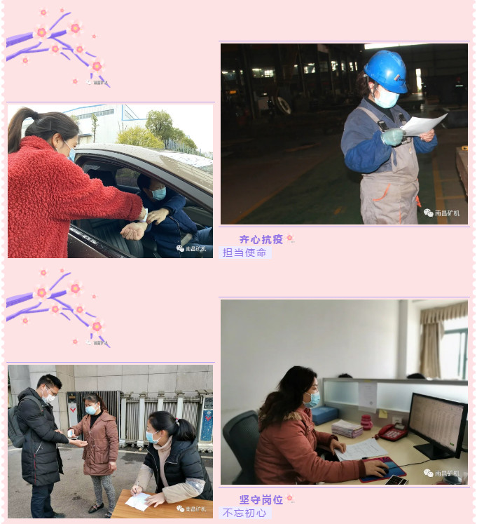 值此“三八”婦女節(jié)來臨之際,南昌礦機(jī)祝廣大女神們節(jié)日快樂!在疫情中擔(dān)當(dāng)使命,在崗位中不忘初心,為“早日全面步入正常軌道”而繼續(xù)奮戰(zhàn)!